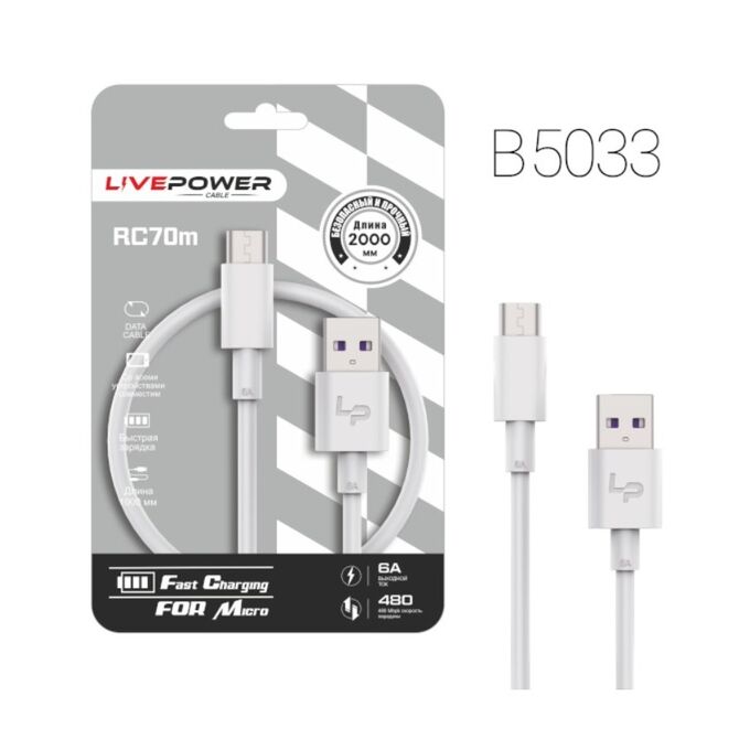 USB-кабель Live-Power RC70 Micro 6A 2000mm White 10шт в упаковке