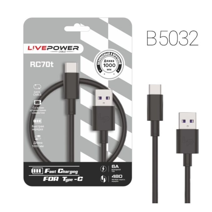 USB-кабель Live-Power RC70 Type-C 6A 1000mm Black 10шт в упаковке