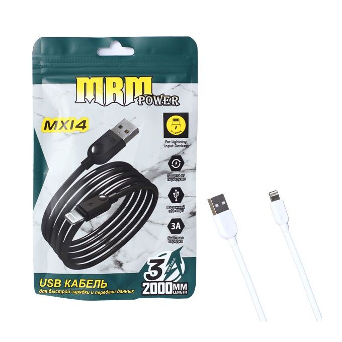 USB-кабель MRM MX14 Lightning 3000mm White 20шт в упаковке