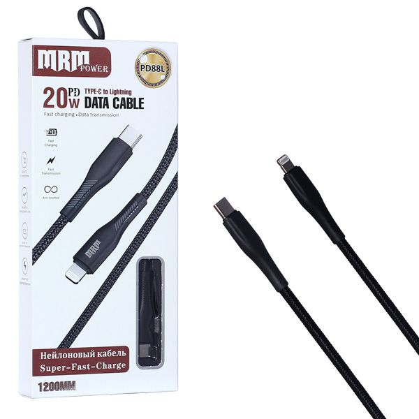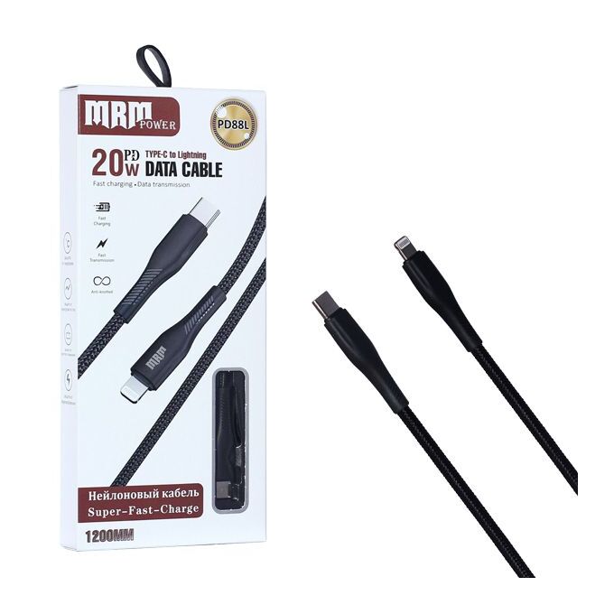 USB-кабель MRM PD88L Type-C-L 3.1A 20W 1200mm Black 10шт в упаковке