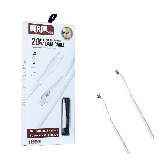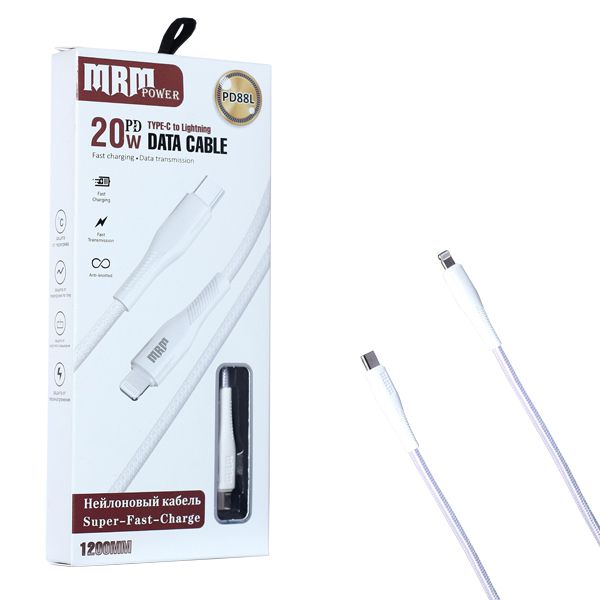 USB-кабель MRM PD88L Type-C-L 3.1A 20W 1200mm White 10шт в упаковке