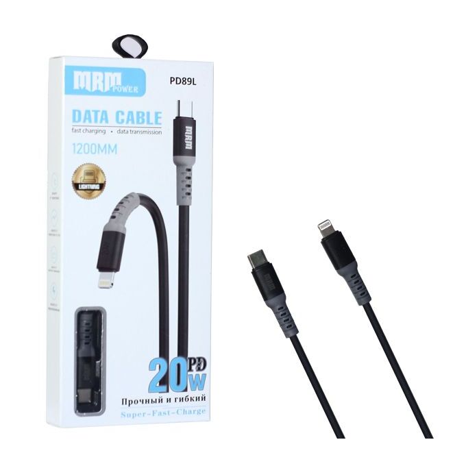 USB-кабель MRM PD89L Type-C-L 3.1A 20W 1200mm Black 10шт в упаковке