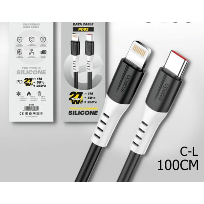 USB-кабель Ugetus PD82L C-L 27W 1000mm cиликоновый Black 10шт в уп