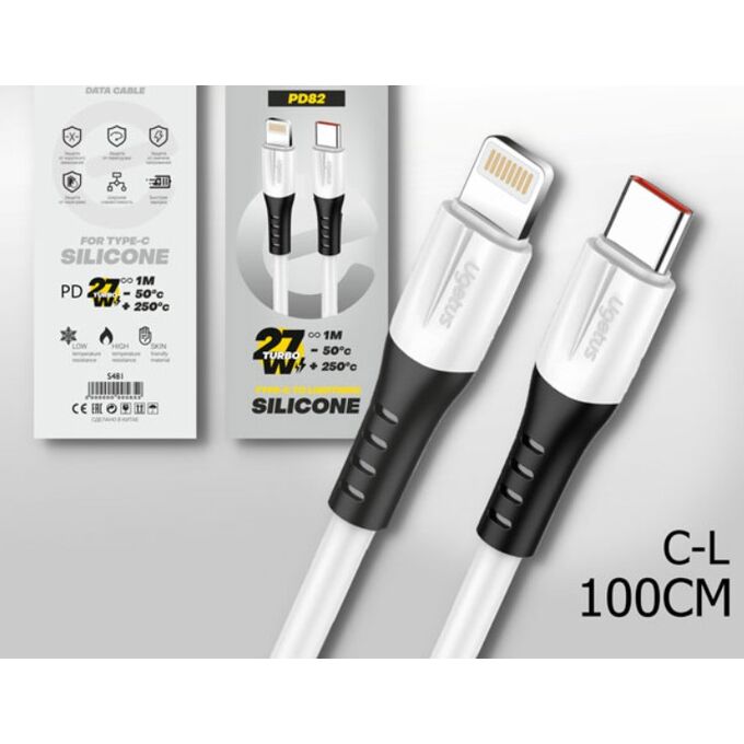 USB-кабель Ugetus PD82L C-L 27W 1000mm cиликоновый White 10шт в уп
