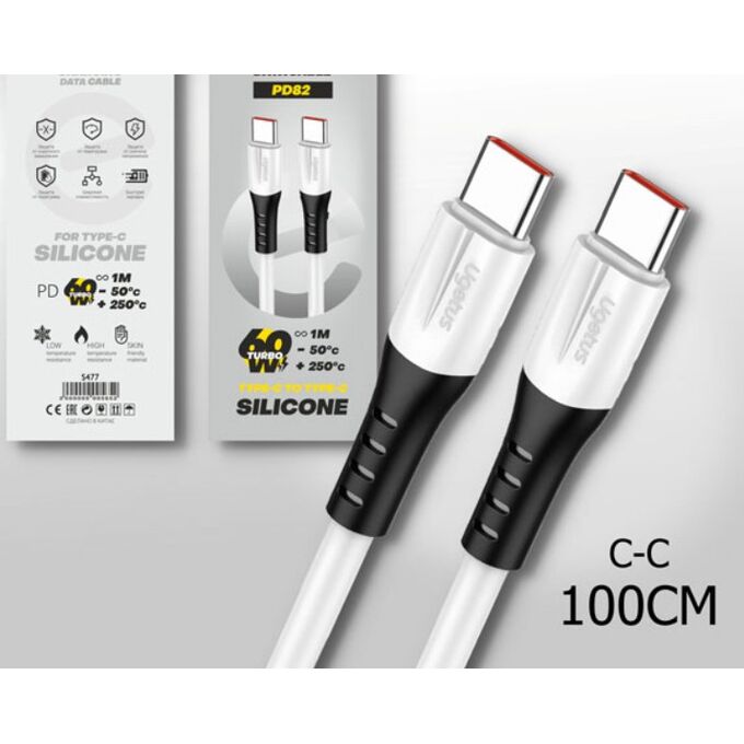 USB-кабель Ugetus PD82T C-C 60W 1000mm cиликоновый White 10шт в уп