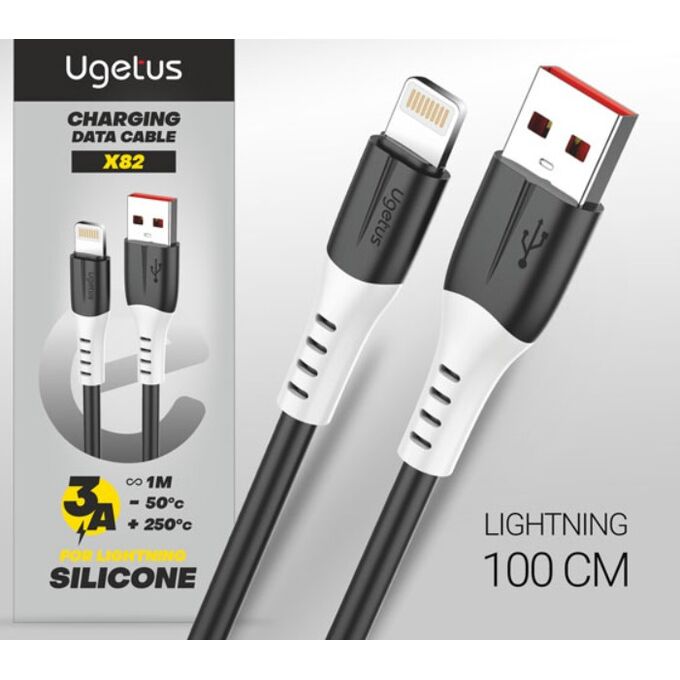 USB-кабель Ugetus X82 Lightning 5A силиконовый 1000mm Black 10шт в уп