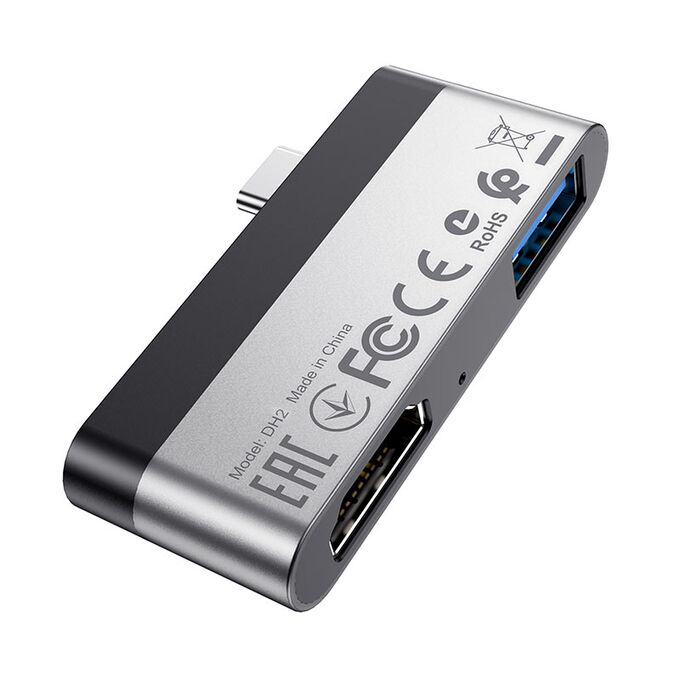 USB-концентратор Borofone DH2, алюминий, Type-C на HDMI, USB 3.0, цвет: серый(1/18/180)