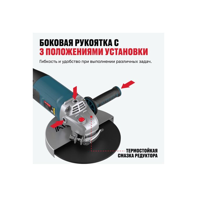 - Дополнительная рукоятка с 3 положениями установки — гибкость и удобство при выполнении различных задач