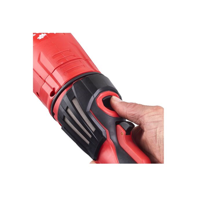 Угловая шлифмашина Milwaukee AGVKB 24-230 EKX 4933471464 оснащена фиксируемым кнопочным выключателем.