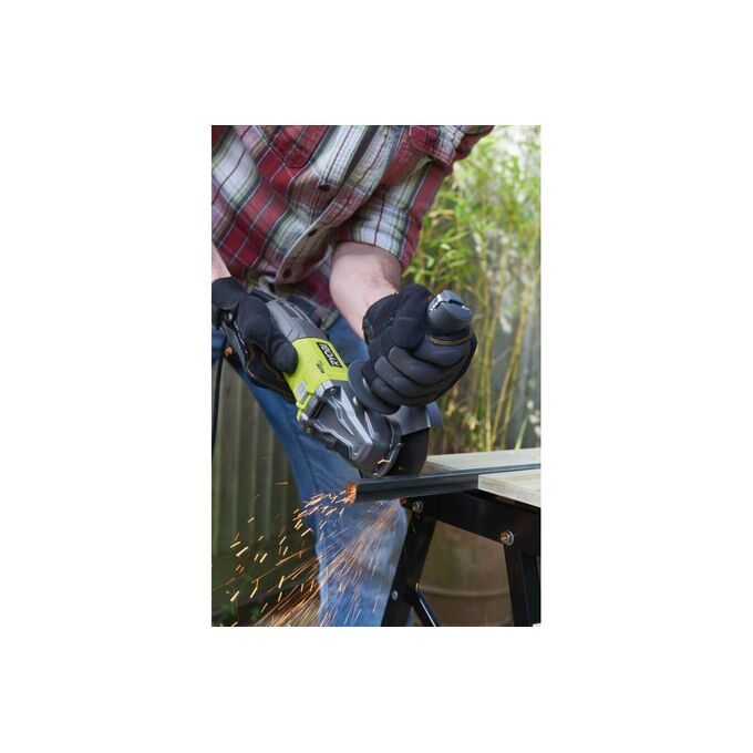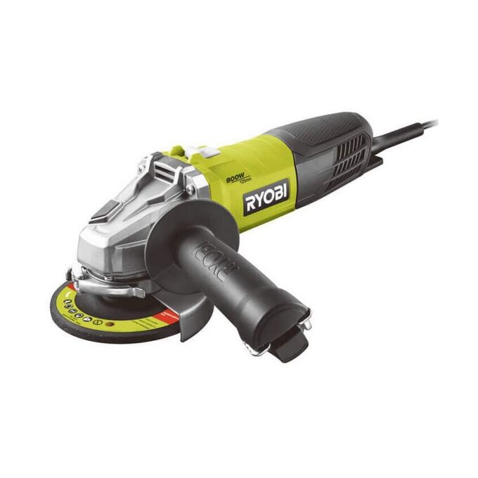 Угловая шлифмашина Ryobi RAG800-125S 5133002493 оснащена мощным двигателем и высокомоментным редуктором.