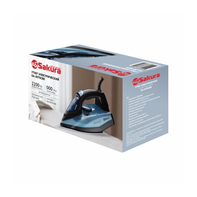 Утюг. Мощность 2400 Вт, резервуар д/воды 380 мл, подошва керамика (229х118 мм), регулируемый термостат, распылитель воды, регулятор интенсивности пара, вертикалбное отпаривание, паровой удар, автоочистка, мерный стакан, общая длина шнура питания 1,9 м
