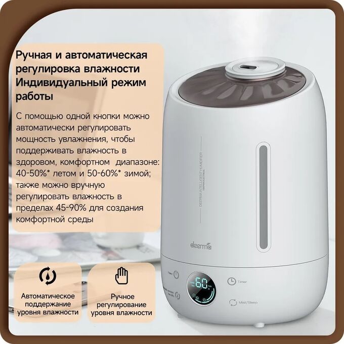 Увлажнитель воздуха для дома Deerma DEM-F630 – является улучшенной версией популярной модели со встроенным LED-дисплеем и отсеком для аромамасел. Наполните вашу квартиру любимыми ароматами и поднимите уровень влажности до комфортного уровня.