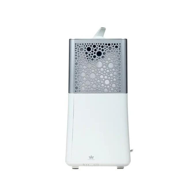 Увлажнитель воздуха отличается многофункциональностью. Устройство сочетает в себе возможности разных бытовых приборов: тренажёра для дыхательной гимнастики, часов, метеостанции. В конструкции имеется турбораспылитель и подсветка.