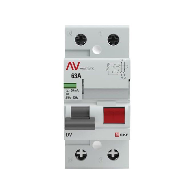 Устройство защитного отключения DV 2P 63А/ 30мА (A) EKF AVERES rccb-2-63-30-a-av предназначено для защиты человека от поражения электрическим током при прикосновении к открытой проводке или к электрооборудованию, оказавшемуся под напряжением, и для предотвращения возгорания, возникающего вследствие длительного протекания токов утечки и развивающихся из них токов короткого замыкания. Для защиты от токов перегрузки и короткого замыкания необходимо использовать выключатели дифференциального тока совместно с автоматическими выключателями.