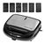 В комплекте: многофункциональный прибор для выпечки, форма для приготовления венских вафель (2 шт.), форма для приготовления тостов и сэндвичей (2 шт.), форма для приготовления орешков (2 шт.), форма для приготовления пончиков (2 шт.), форма для приготовления сосисок в тесте (2 шт.), форма для гриля (2 шт.), руководство по эксплуатации, книга рецептов