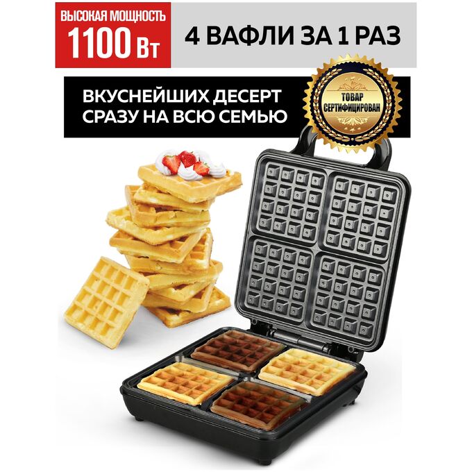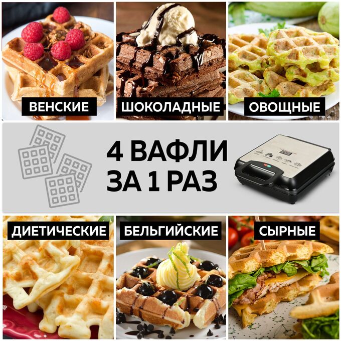 Электрическая вафельница GFW-036 поможет Вам приготовить сразу 4 ароматные, вкусные, хрустящие бельгийские или венские вафли за 1 раз. Тем самым вы экономите Ваше время – всего несколько минут и у вас сразу 4 вкуснейшие вафли или 2 необычных и сытных вафельных сэндвича с Вашей любимой начинкой!