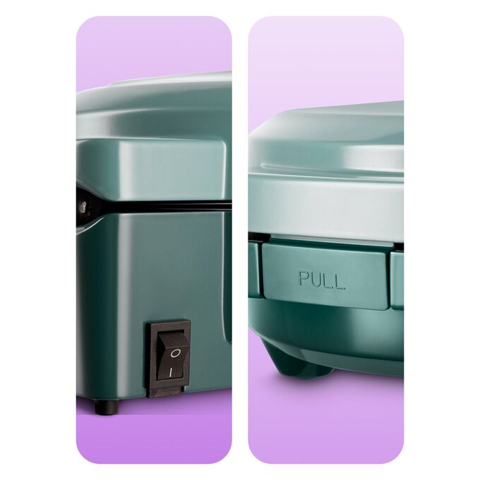 Антипригарное покрытие панелей вафельницы не даёт прилипнуть тесту в процессе приготовления и позволяет готовить с минимальным количеством масла. Для удобства ухода панели сделаны съёмными — их можно мыть под проточной водой.
