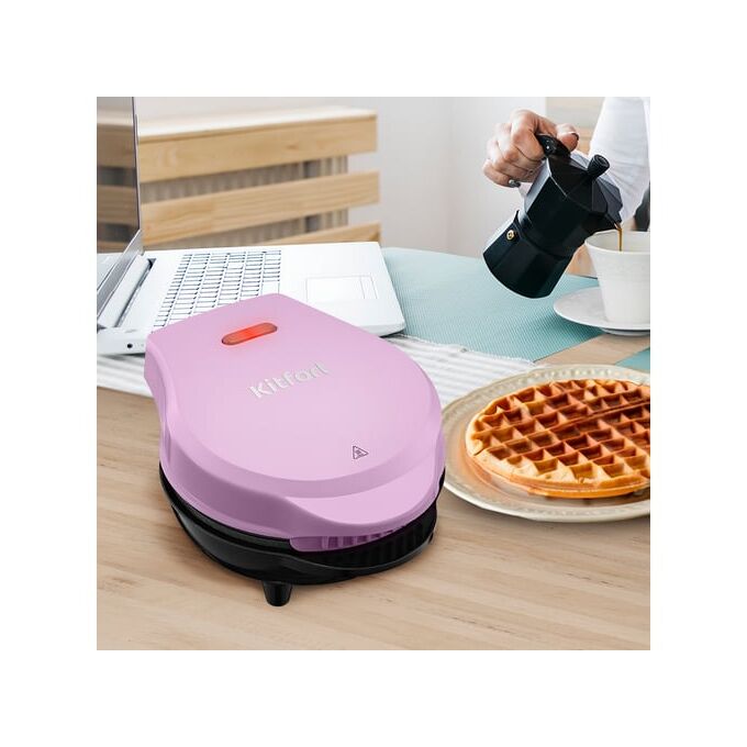 С помощью электрической вафельницы КТ-3685 вы сможете печь круглые бельгийские вафли. Вафельница рассчитана на приготовление 1 вафли за один раз. Компактный размер вафельницы позволяет экономить место на кухне. Также небольшой размер вафельницы облегчает уход за прибором, поэтому вы сможете готовить вафли с удовольствием даже на завтрак, когда времени на приготовление и уборку мало.