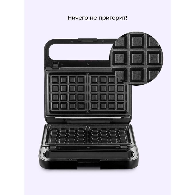 У прибора три пары панелей: панели для приготовления вафель, панели для приготовления бутербродов и ребристые панели для гриля. Высокая температура нагрева панелей способствует быстрому приготовлению продуктов.