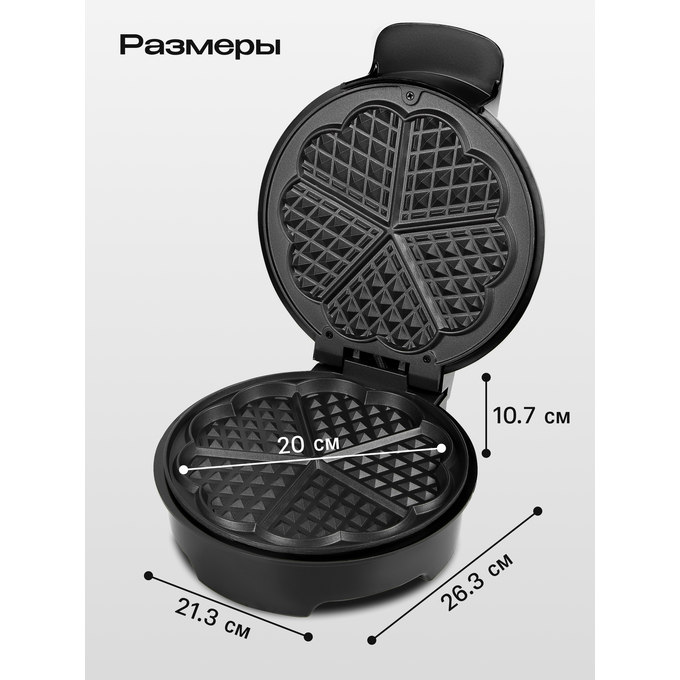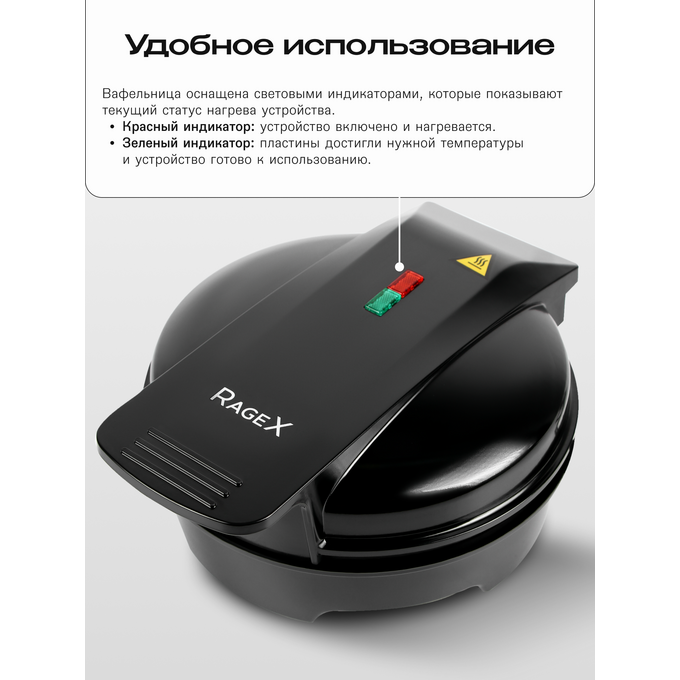 Вафельница RageX R703-000, сердечки, 1000Вт, черная