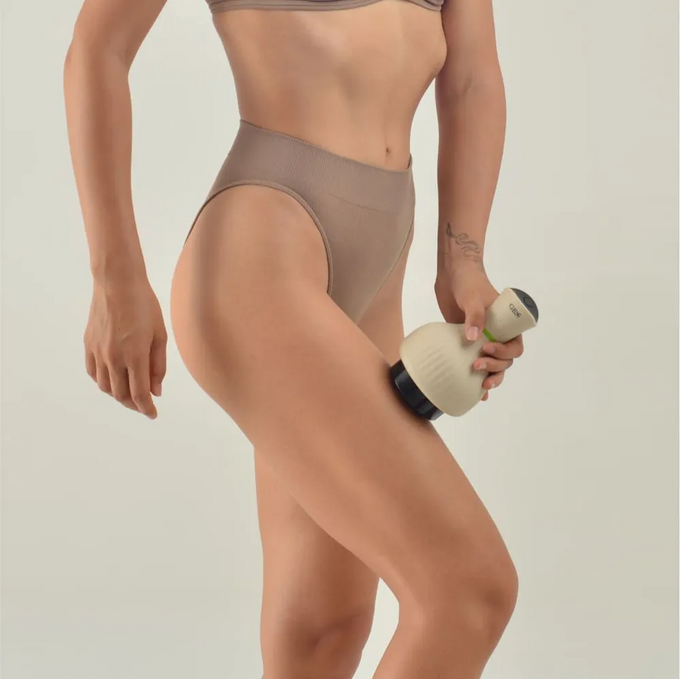 В режиме вибромассажа разбивает жировые отложения, уменьшает проявления целлюлита, выравнивает рельеф кожи.