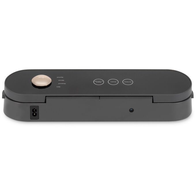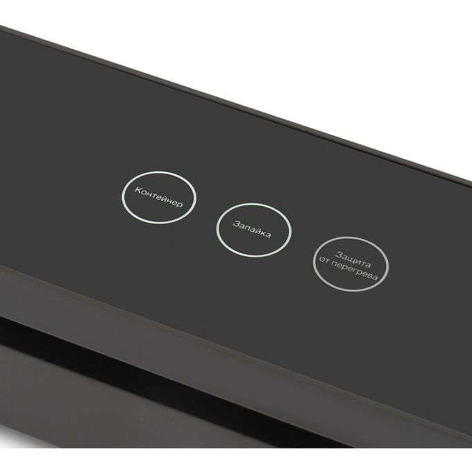 Акриловая поверхность, сенсорное управление+колесо, 6 программ, откачака 4л/минуту, макс. давление -65Kpa, шум 65-70dB, съемный нож, насадка для вакуумации контейнеров, 10 пакетов 20*30см в комплекте.