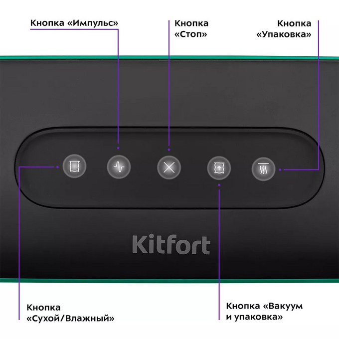 Вакуумный упаковщик KitFort КТ-1541 черный/бирюзовый