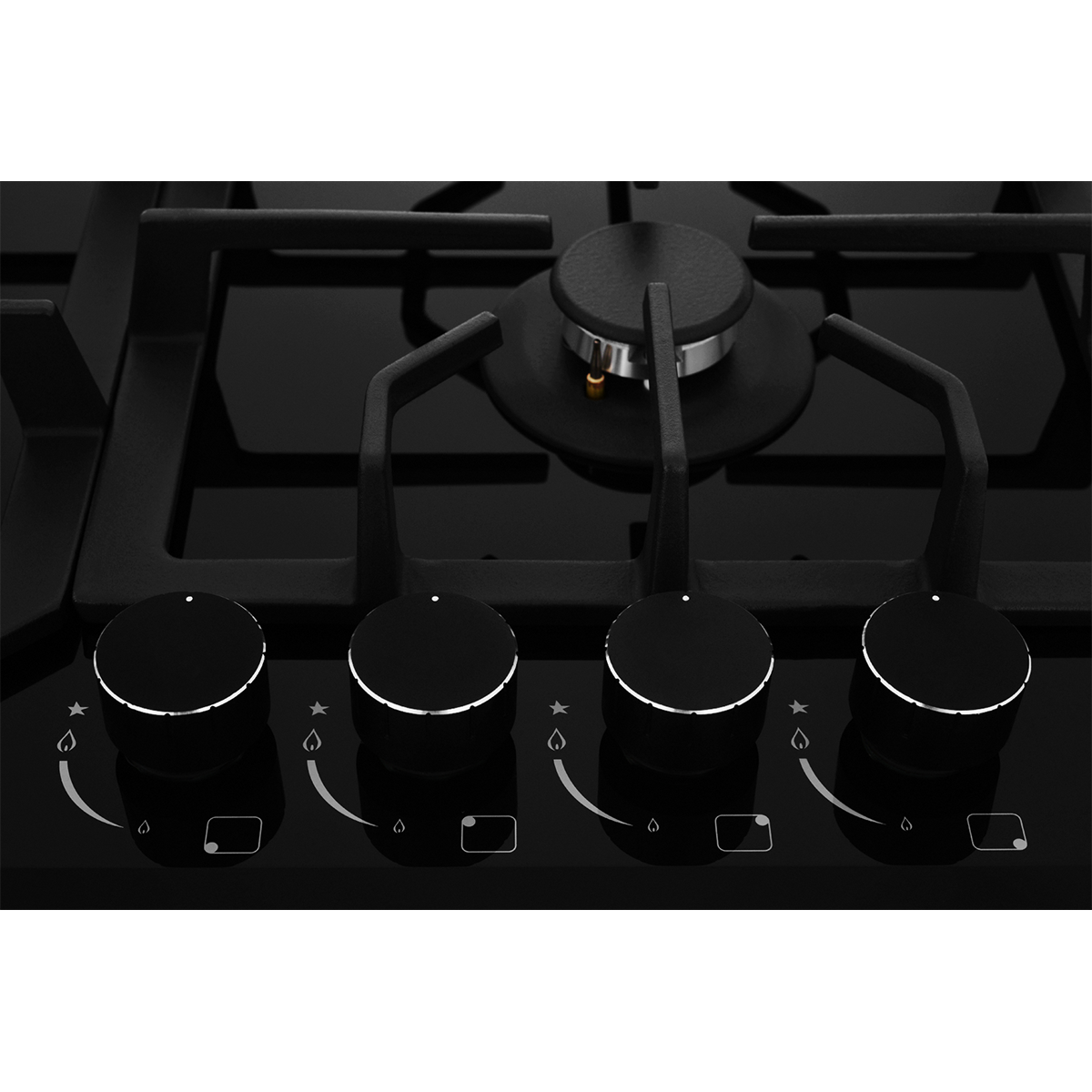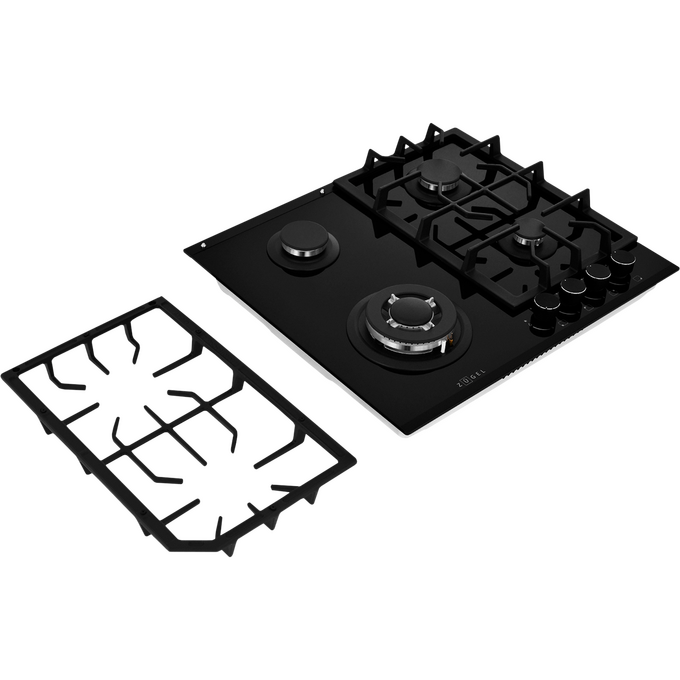Мощная WOK-конфорка с 2 рассекателями и тройным контуром огня, Металлические дизайнерские ручки, Технология "газ на стекле", Форсунки для конверсии(природный/сжиженный) газа в комплекте