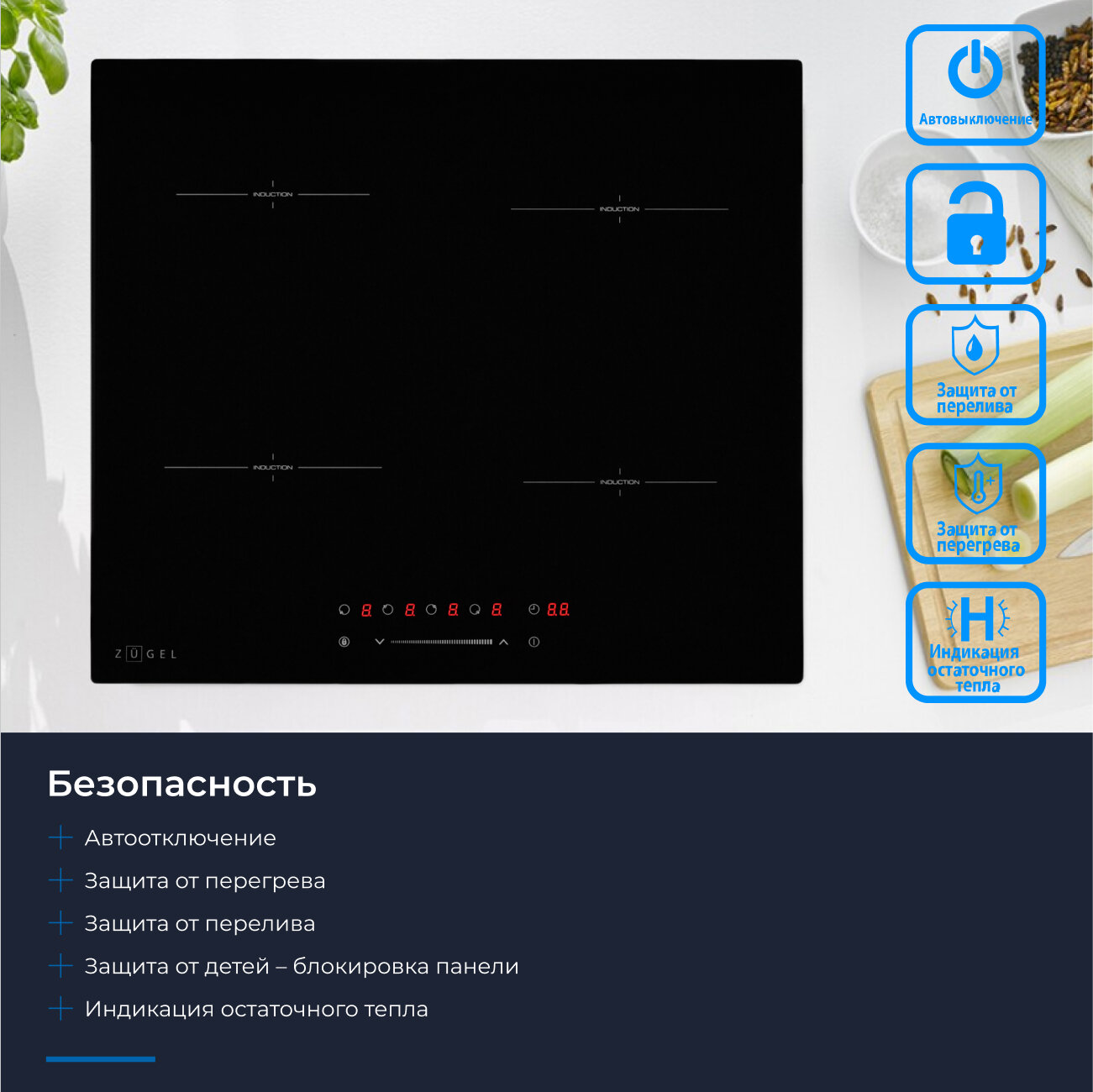 Варочная панель ZUGEL ZIH604B черная