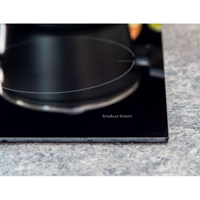 материал поверхности: стеклокерамика; индукционных конфорок: 4; таймер: электронный; блокировка от детей; цвет: черный