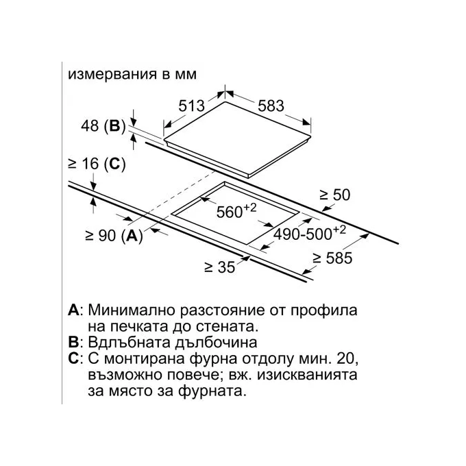 Габариты ниши для встраивания (ШxГ) 56x49-50 см