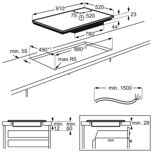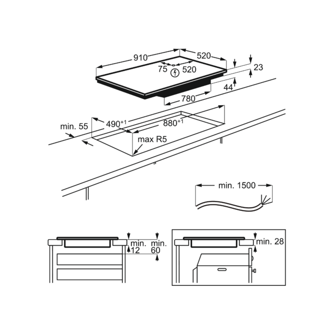 Встраиваемая электрическая панель ELECTROLUX/ Индукционная, РОЗНИЧНЫЙ ЭКСКЛЮЗИВ! 91х52х4,4 см, индукция, черный, сенсорное управление, скошенные края