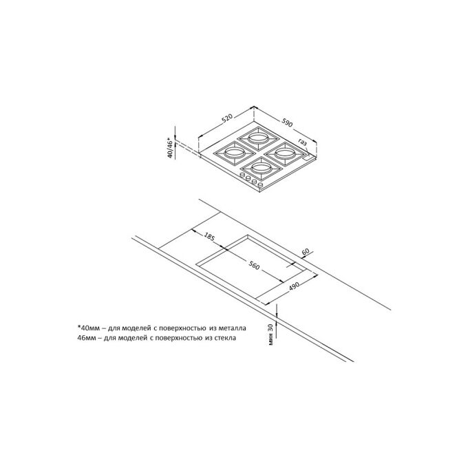 Габариты ниши для встраивания (Ш х Г), см 56 х 49