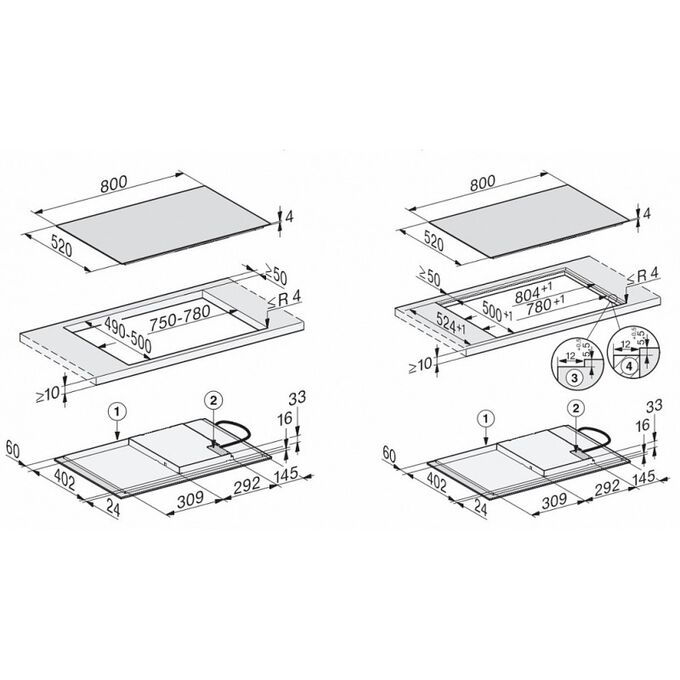 Размер зон нагрева 2х(110-210) мм, 1х(110-220) мм, 1х(90-160) мм