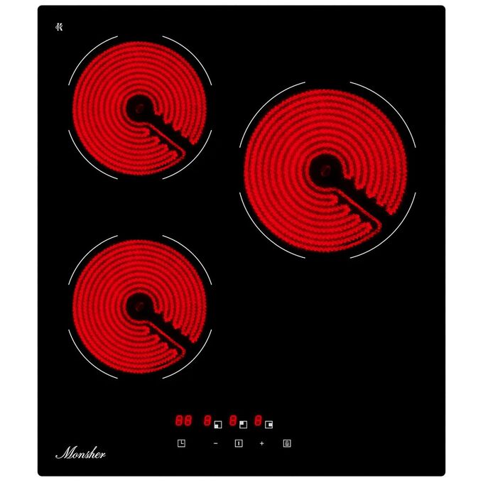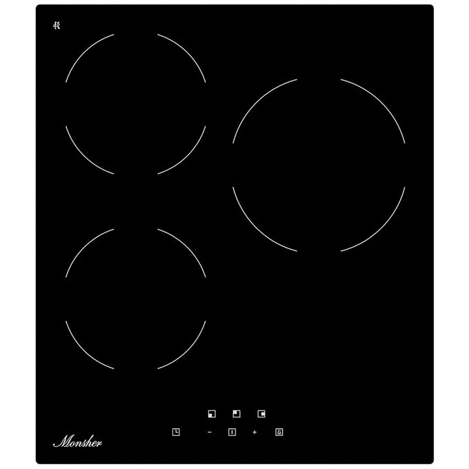 Варочная поверхность Monsher MHE 43 High-Tech, Hi-Light, 45см, 3 конфорки, 9 уровней мощности, сенсорное управление, автоматическое отключение, индикация