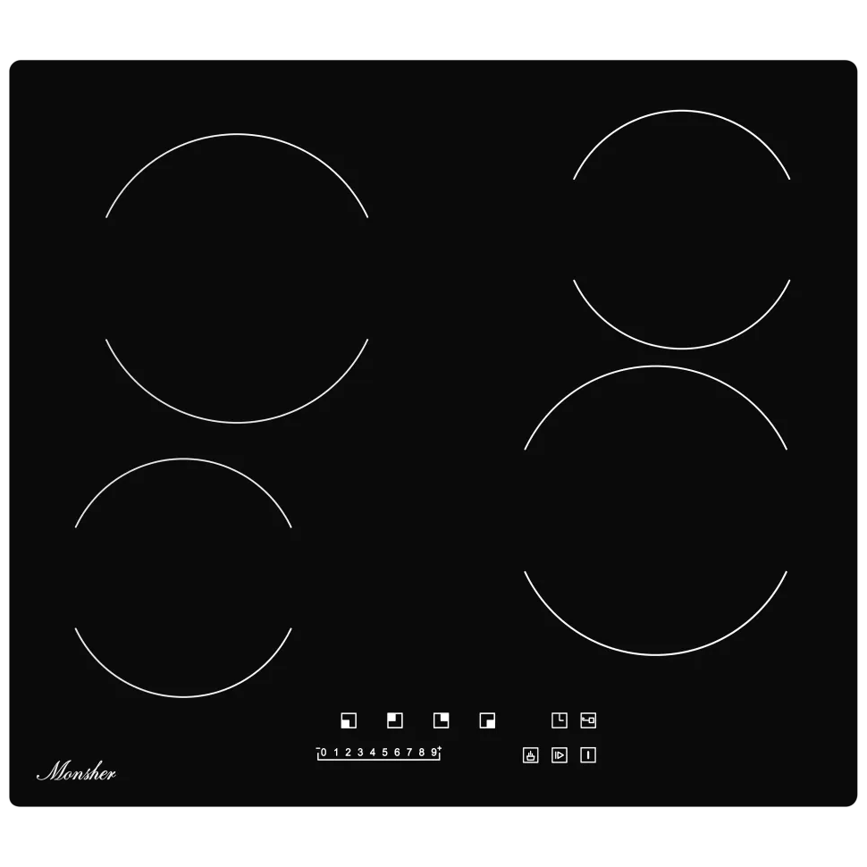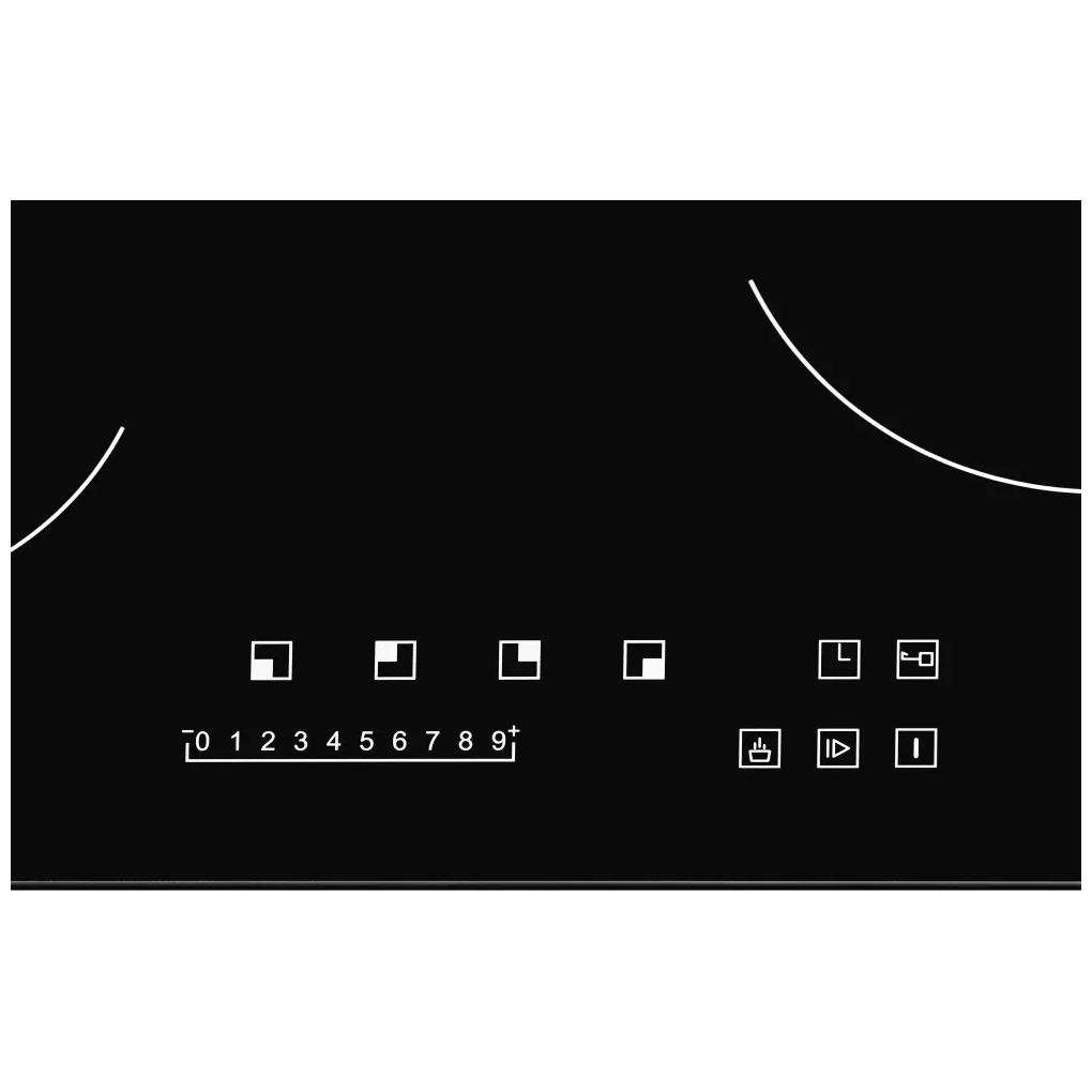 защитное отключение конфорок, индикатор остаточного тепла, кнопка блокировки панели