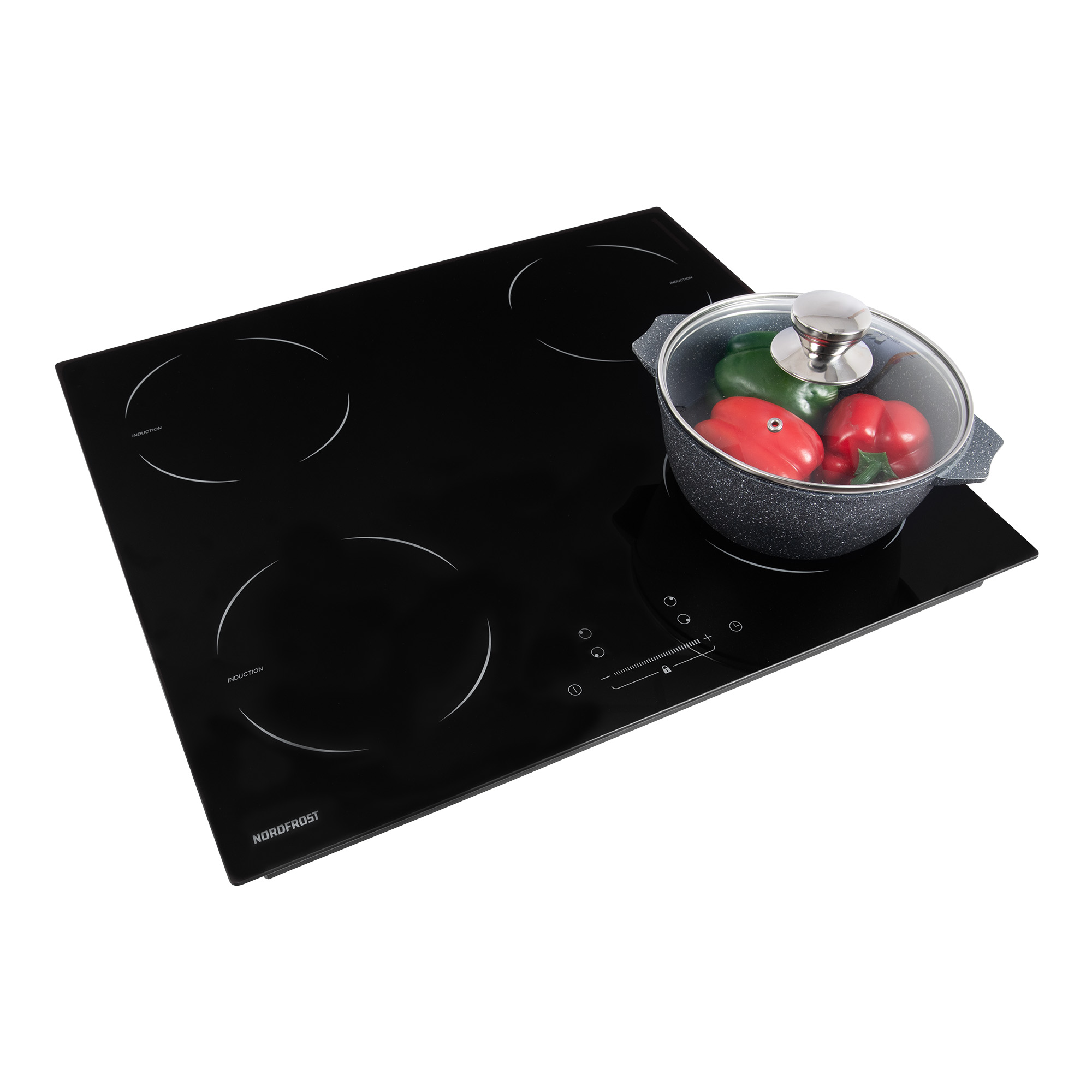 Безопасность: кнопка блокировки панели, индикатор остаточного тепла, защитное отключение конфорок