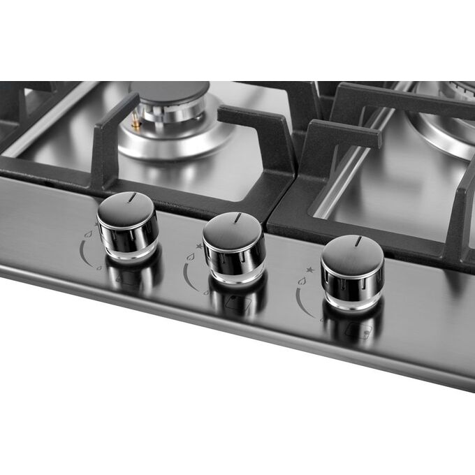 независимая; общая мощность конфорок 6200Вт; количество конфорок 3; поверхность нержавеющая сталь; решетка чугун; автоматический электроподжиг; ширина 450мм; цвет нержавеющая сталь