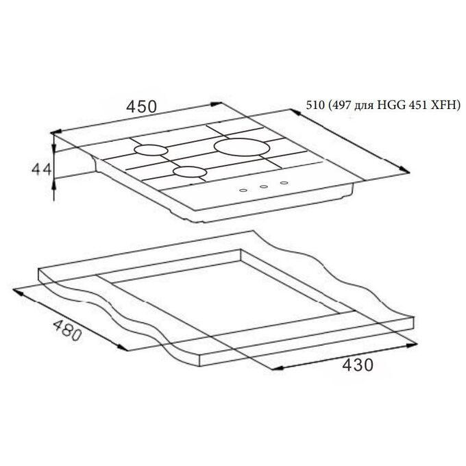 Размеры ниши для встраивания (ШхГ): 430 х 480 мм