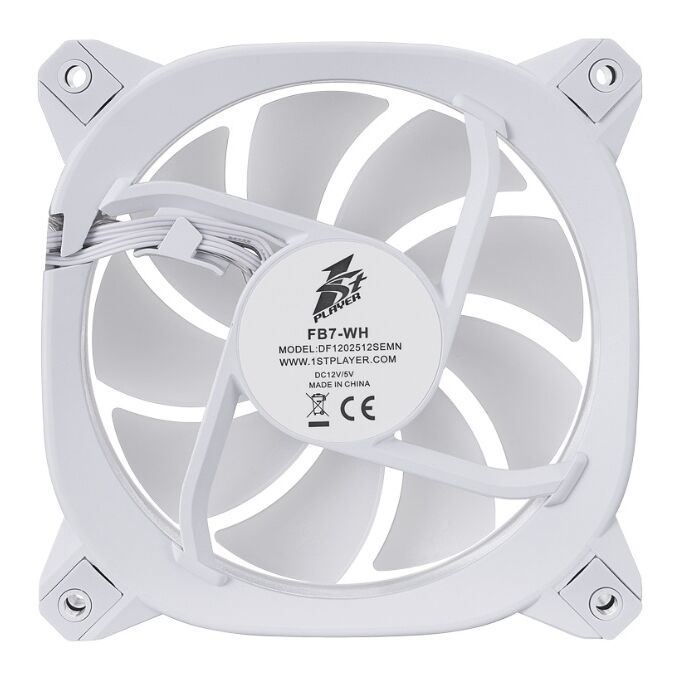 Вентилятор 1STPLAYER FB7 White (FB7-WH) / 120mm ARGB 3pin 5V PWM 4pin 12V 600-1800rpm 45.12cfm 47.2dBA / BULK