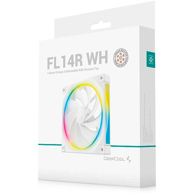 Вентилятор DEEPCOOL FL14R WH 140x140x25мм Reverse (PWM, ARGB, белый, 500-1700об/мин) Color Box