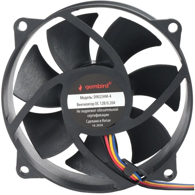 Вентилятор для корпуса Gembird (D9025HM-4) 90x90x25, гидродинамический, 4 pin, провод 30 см