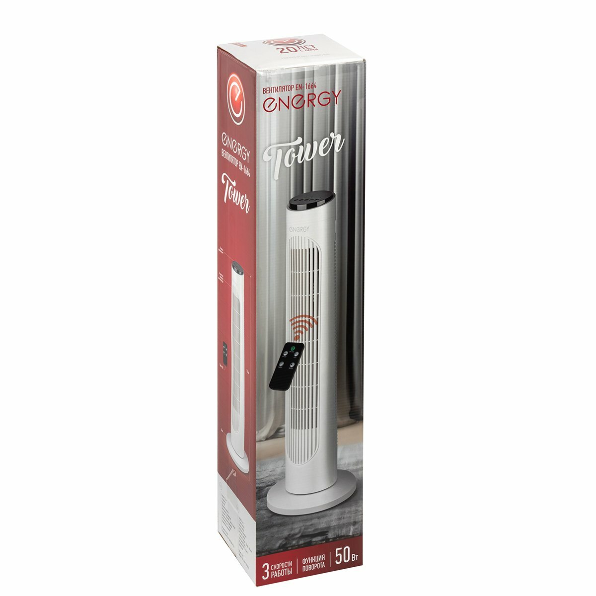 Прибор предназначен для создания потока воздуха в помещении для обеспечения комфортного пребывания в жаркий период. Вентилятор Energy EN-1664 TOWER имеет 3 режима работы: NORMAL – вентилятор подает воздух постоянно с высокой, средней или низкой скоростью. На панели управления индикатор не горит. NATURAL – вентилятор подает воздух на заданной скорости с небольшими паузами. На панели управления загорится индикатор режима NATURAL. SLEEP – поток воздуха ослабевает постепенно, затем усиливается. На панели управления загорится индикатор SLEEP. Каждые 30 минут скорость работы снижается, в итоге вентилятор работает в данном режиме на минимальной скорости. Состав (материал): пластмасса, металл.