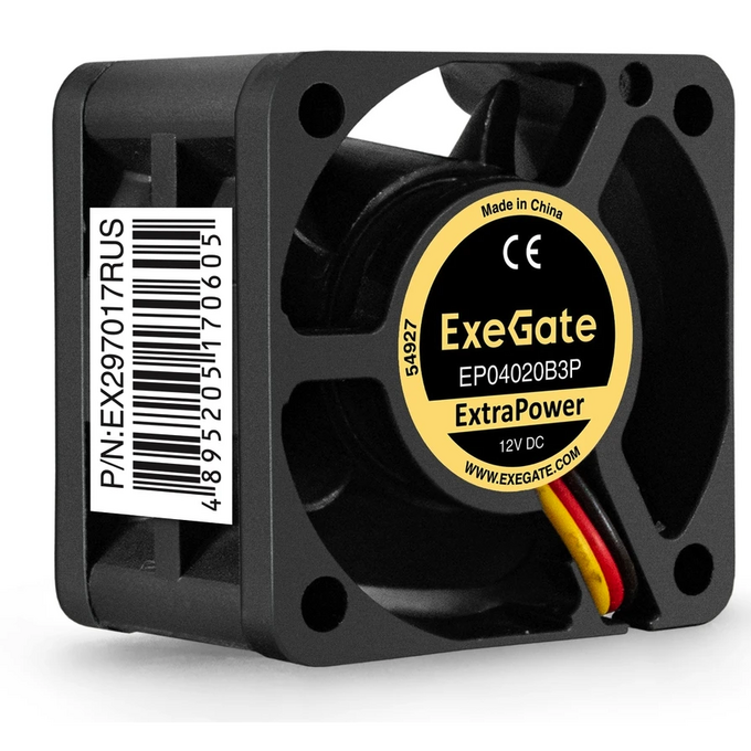 Вентилятор Exegate ExtraPower EP04020B3P EX297017RUS 12В DC (40x40x20 мм, 2-Ball (двойной шарикоподшипник), 3pin, 7000RPM, 32dBA)