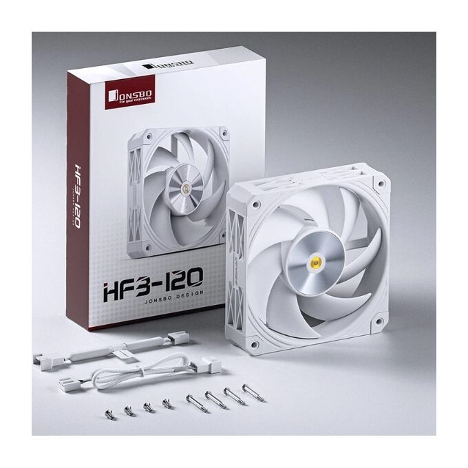 Вентилятор JONSBO HF3-120W 120х120х30мм (PWM, 300-2800об/мин, белый) Retail
