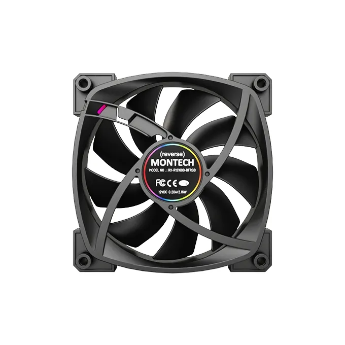 Вентилятор Montech RX120 PWM Reverse Black (RX120B) / 120mm, 4pin PWM, 3pin ARGB, 800-1600RPM, 59.0CFM, 27.0dBA, Rifle bearing