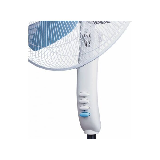 Напольный вентилятор SONNEN FS40-A104 Line, 45 Вт, 3 скоростных режима, белый/синий, 451034 способствует движению воздуха и помогает создать комфортную атмосферу в помещении. Прибор оснащен защитными решетками, они делают вентилятор безопасным для детей. Изделие имеет защиту от перегрева.