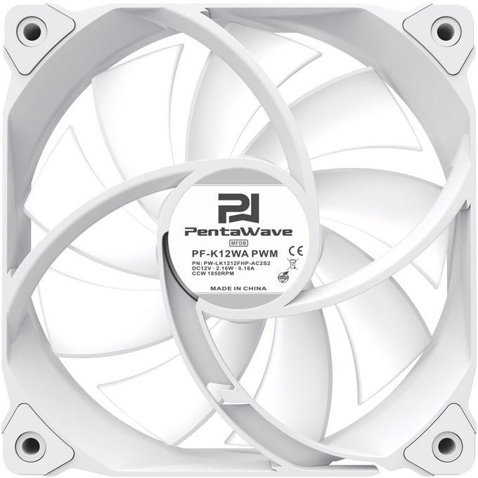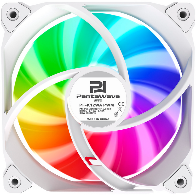 Вентилятор PentaWave PF-K12WA PWM / ARGB / 120mm 4 pin Magnetic FDB 500-1850rpm 83CFM 29.7dBA/ White