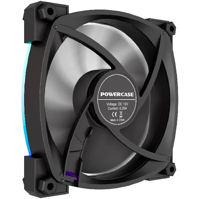 Вентилятор Powercase (M55-12 ARGB) Black 120x120x25мм (PWM, 4pin PWM (M+F)+ 3pin ARGB (M+F), 600-1500 об/мин) Bulk