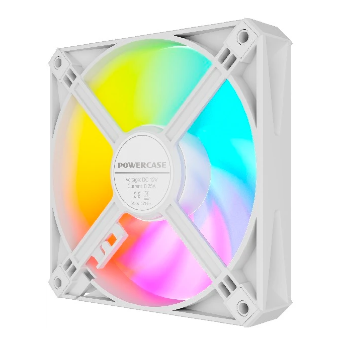 Вентилятор Powercase (M56-12W ARGB) White 120x120x25мм (PWM, 4pin PWM (M+F)+ 3pin ARGB (M+F), 700-1500 об/мин) Bulk
